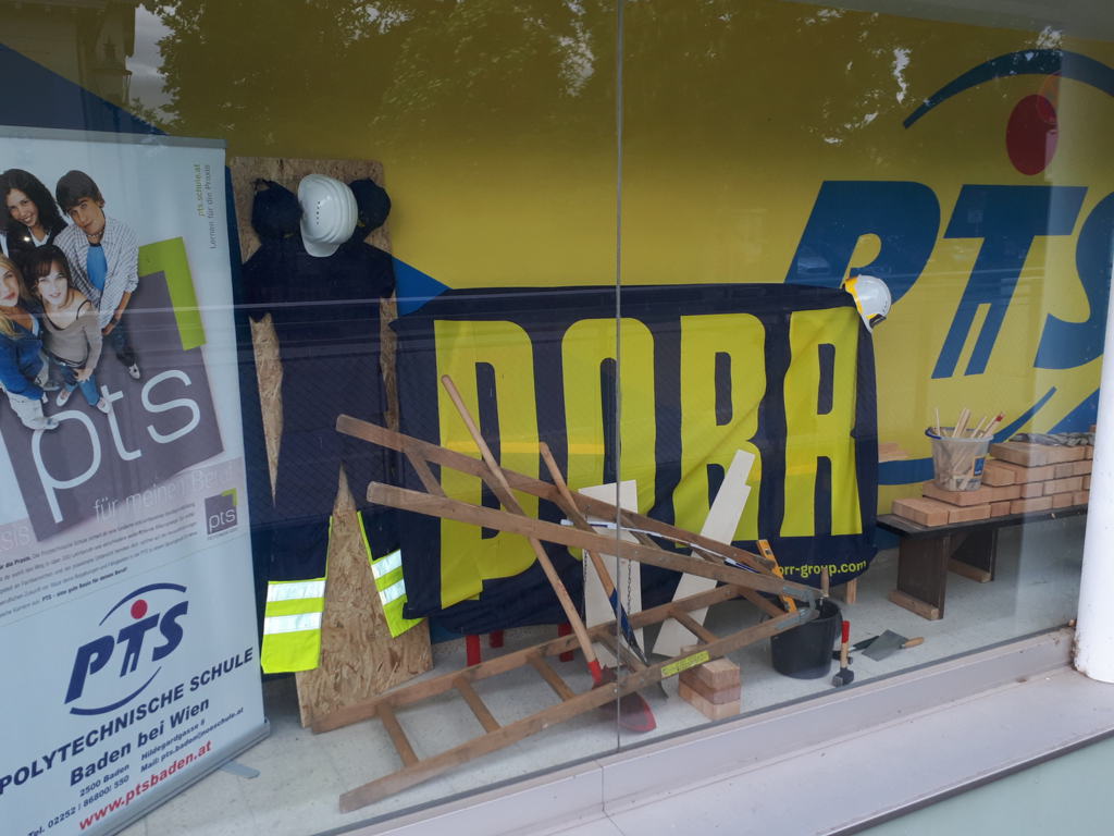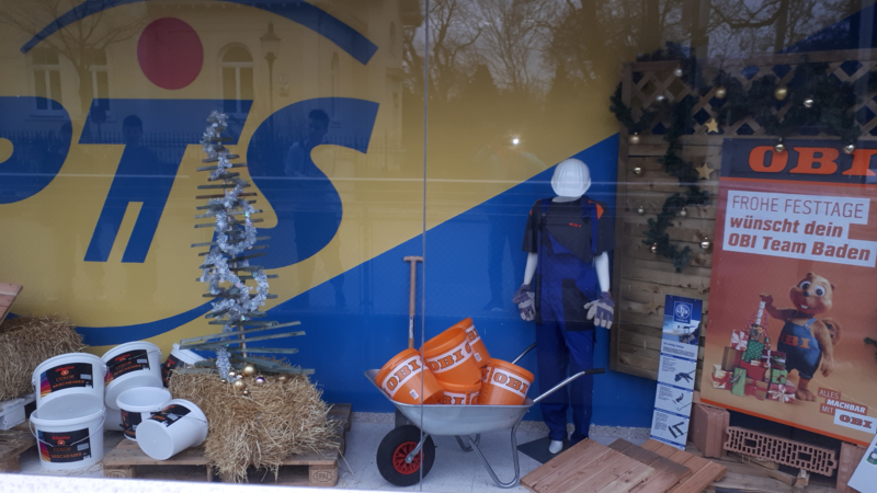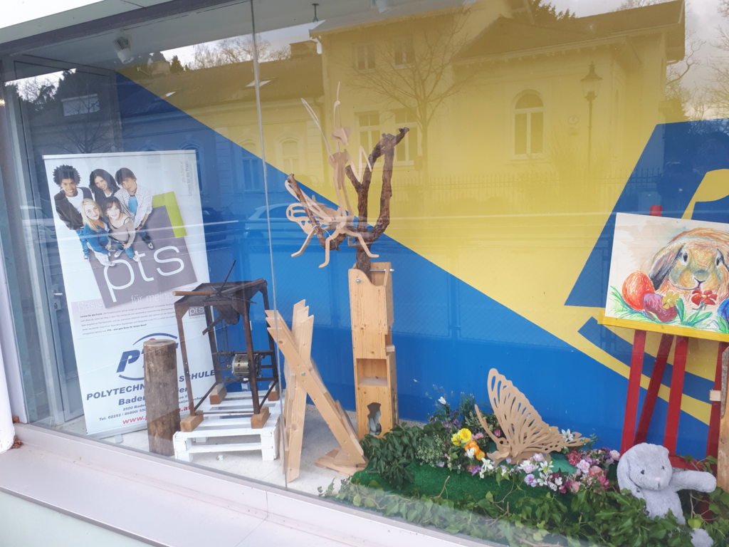 Unsere "Holzer" gestalten die Auslage der PTS Baden